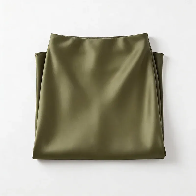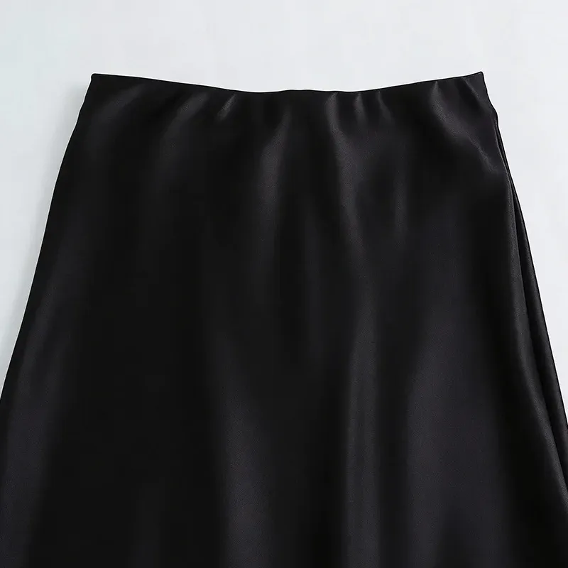 Jupe Midi Satinée Taille Haute