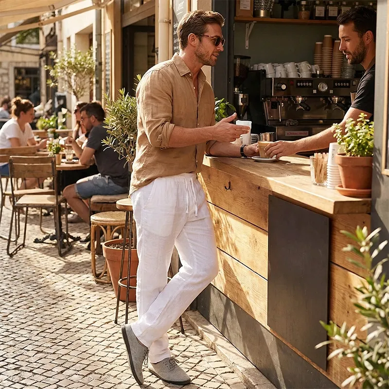 Pantalon large homme en coton respirant et lin