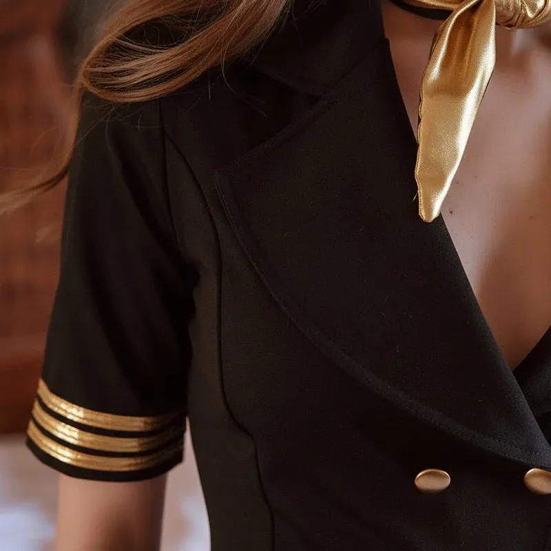 Uniforme d’hôtesse de l’air sexy noire - Costume d’agente de bord