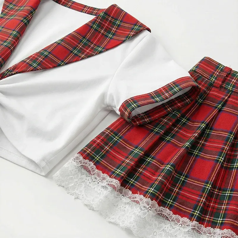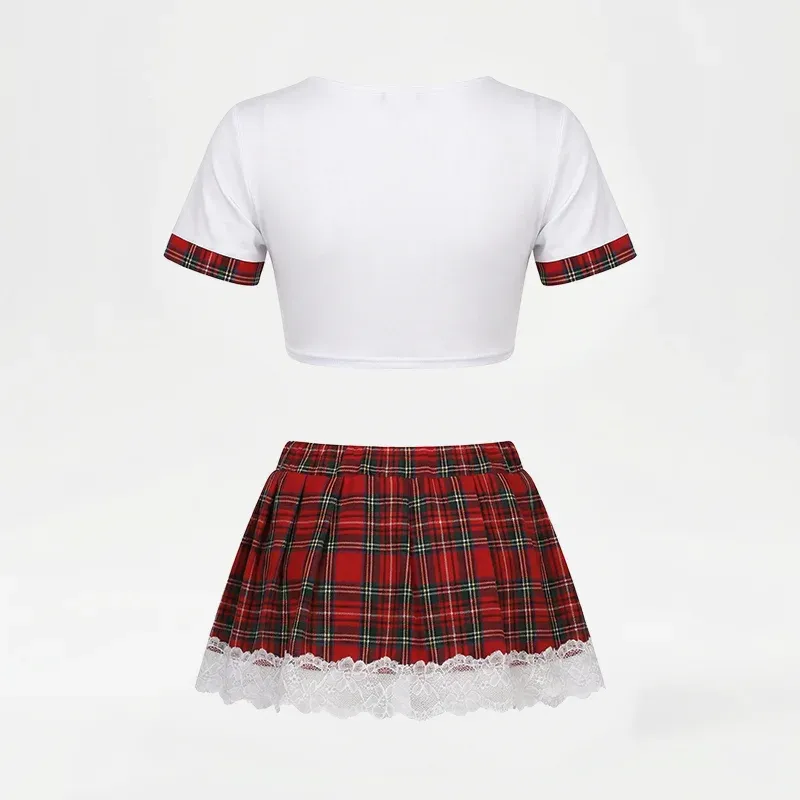 Costume Sexy Cosplay Écolière Tenue à Carreaux Lingerie