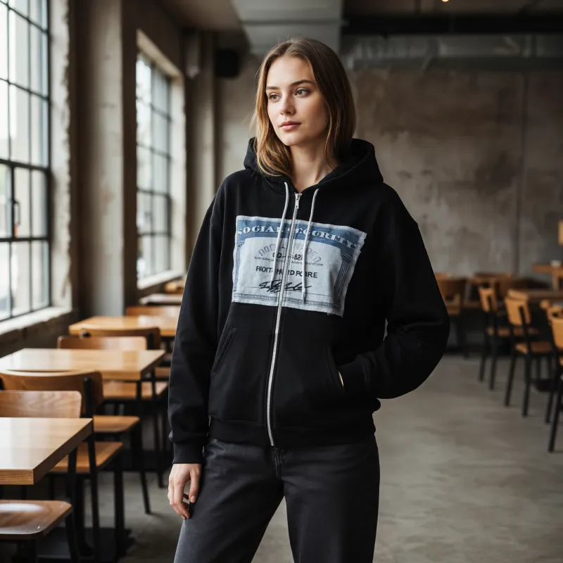 Ce sweat à capuche associe des imprimés vintage à une silhouette polyvalente pour une superposition décontractée. La coupe ample apporte du charme et vous permet d'exprimer votre style tout en profitant d'une chaleur durable. Son tissu doux est agréable à porter, assurant votre confort en toute saison. Une fermeture zippée fiable facilite l'enfilage et vous fait gagner un temps précieux. Les poches spacieuses accueillent vos essentiels et vous offrent de la praticité tout au long de la journée.