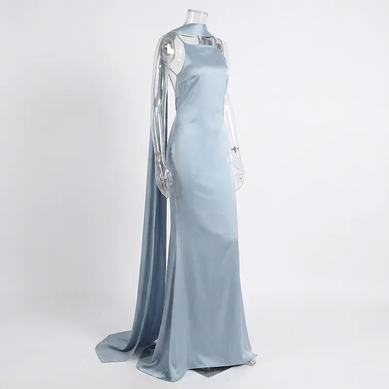 Robe longue dos nu à col licou pour femme, robe de soirée