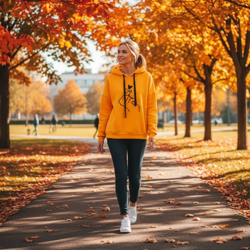 Sara K.Le sweat à capuche est super douillet ! Je le porte lors de mes promenades matinales fraîches et je reste toujours au chaud. Le motif doigt en cœur est vraiment mignon et me fait sourire.
