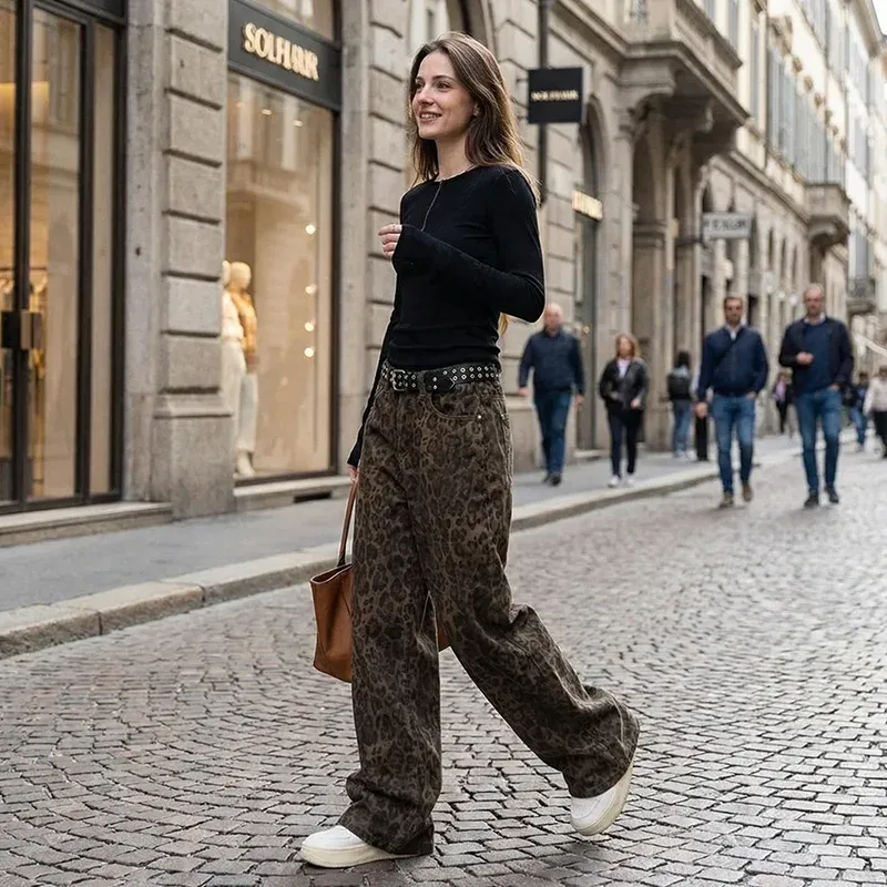 L'imprimé léopard audacieux apporte du caractère et vous permet d'exprimer votre style facilement. Ce jean à jambe large offre liberté de mouvement et confort, parfait pour le porter toute la journée. Le denim premium assure une durabilité longue durée tout en gardant douceur et structure même après de nombreux lavages. La taille haute met la silhouette en valeur, pour une allure flatteuse. Ce pantalon est idéal pour un brunch, du shopping ou une sortie en soirée et offre de nombreuses options stylées.