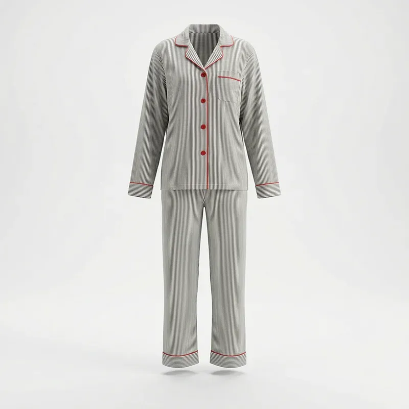 Sentez-vous cosy et chic chaque soir avec ce pyjama rayé. Le tissu doux glisse agréablement contre votre peau, ajoutant à votre confort. Les manches longues offrent chaleur et vous gardent bien au chaud toute la nuit. Que vous vous détendiez ou dormiez, cet ensemble vous assure relaxation. Il est idéal pour celles et ceux qui aiment les vêtements de détente pratiques mais stylés.