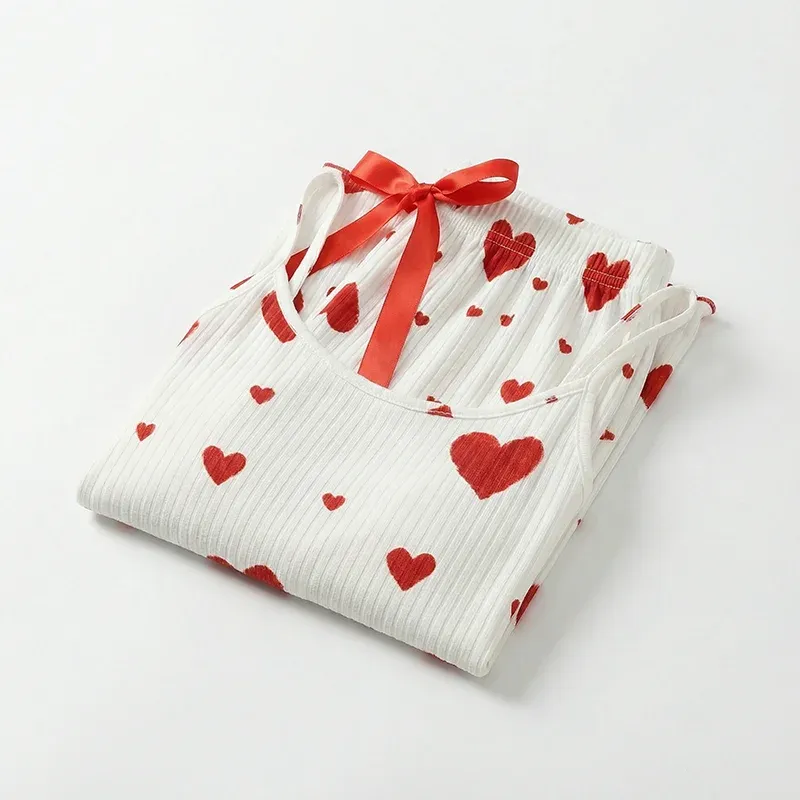 Les motifs de cœurs fantaisistes créent une esthétique joyeuse, transformant le coucher en un moment de plaisir. Le tissu doux et léger assure un grand confort, maintenant le corps au frais et favorisant un sommeil réparateur. L'ensemble permet une liberté de mouvement totale tout en mettant la silhouette en valeur naturellement. Disponible en plusieurs tailles, il s'adapte à une grande diversité de morphologies. Ces jolis pyjamas conservent douceur, forme et couleurs vives lavage après lavage et usage quotidien.