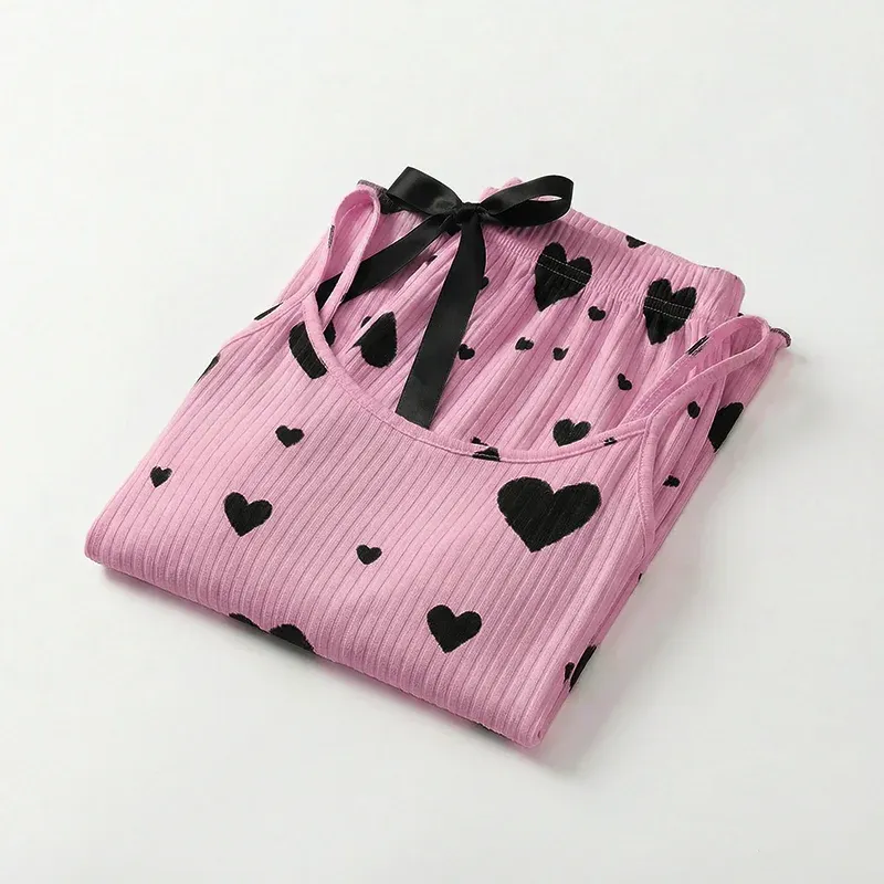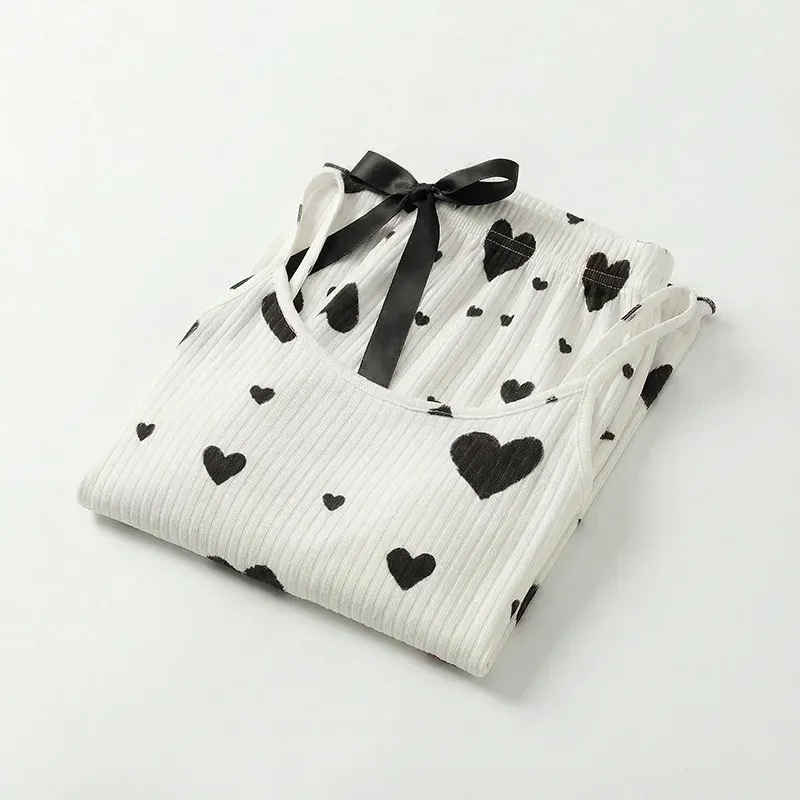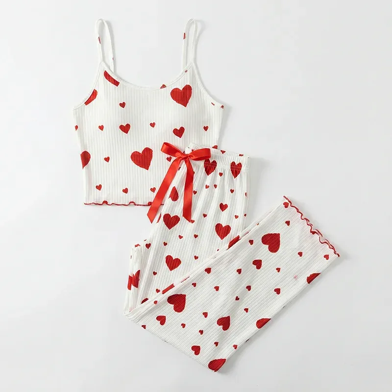 Pyjama femme débardeur imprimé cœur et pantalon