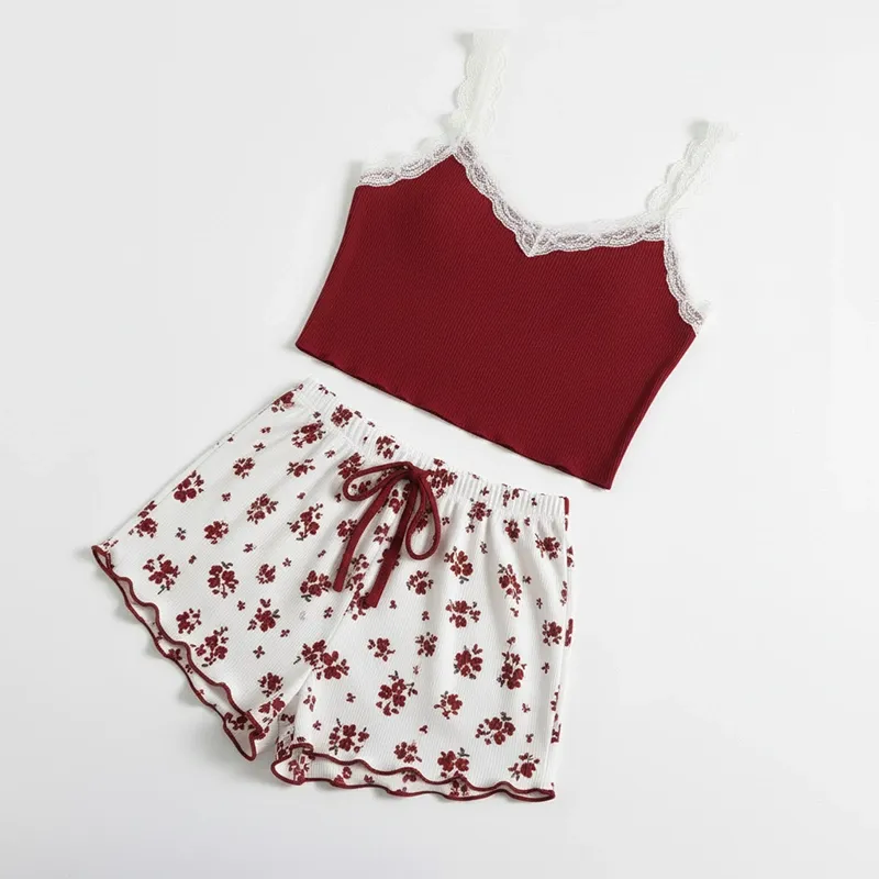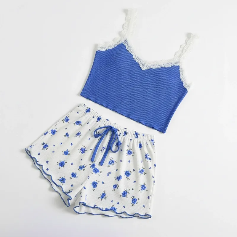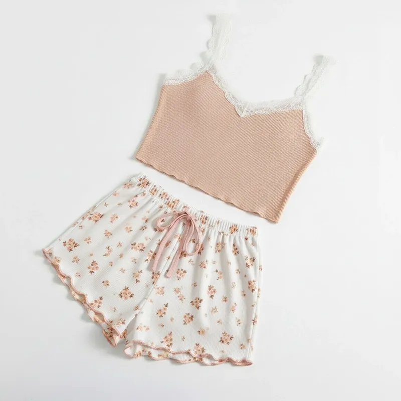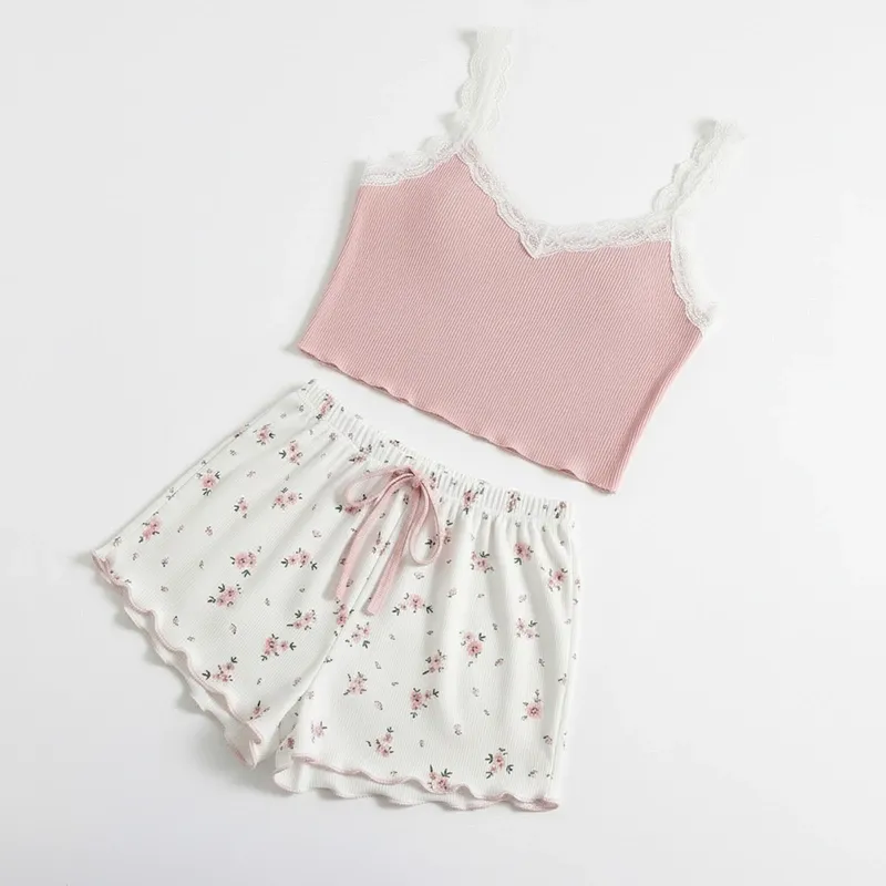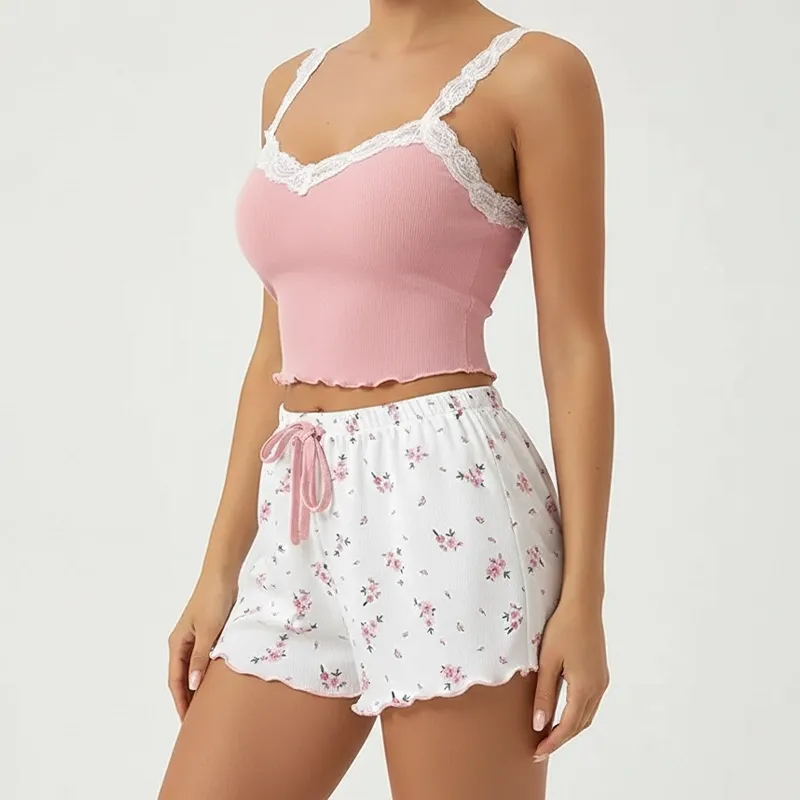 Ensemble pyjama femme haut et short, vêtements de nuit