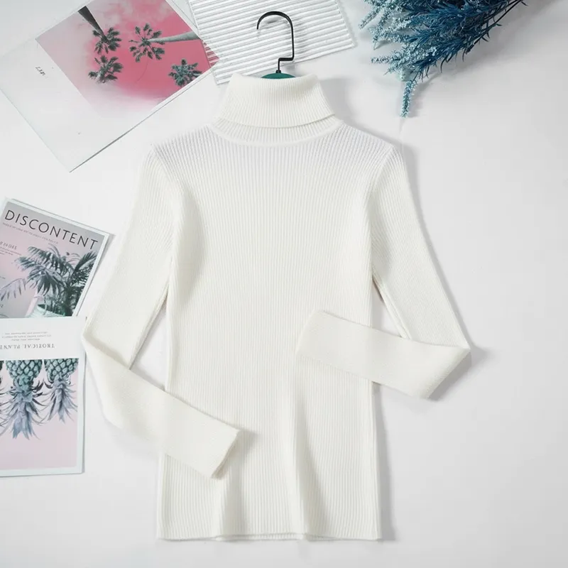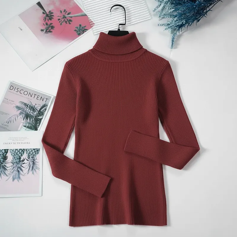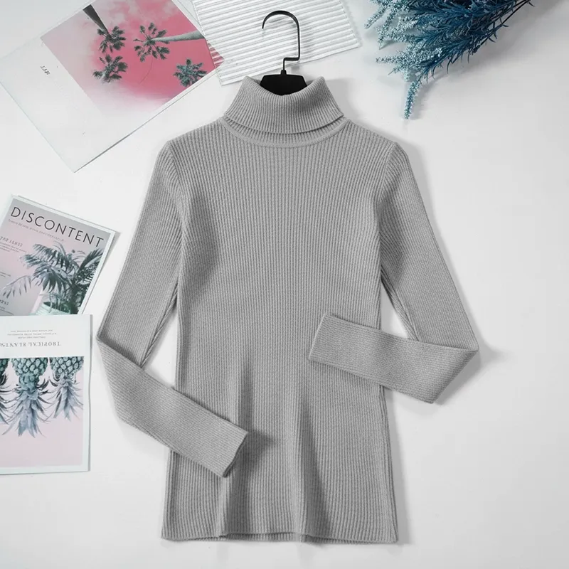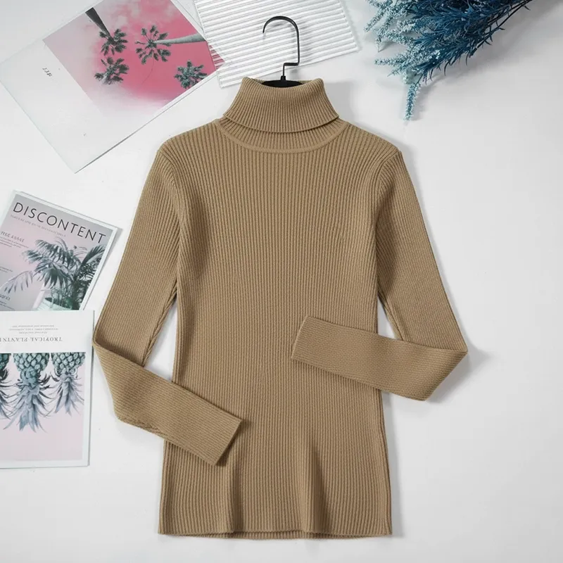 Pull à Col Roulé Côtelé Femme Pull-Over Chaud