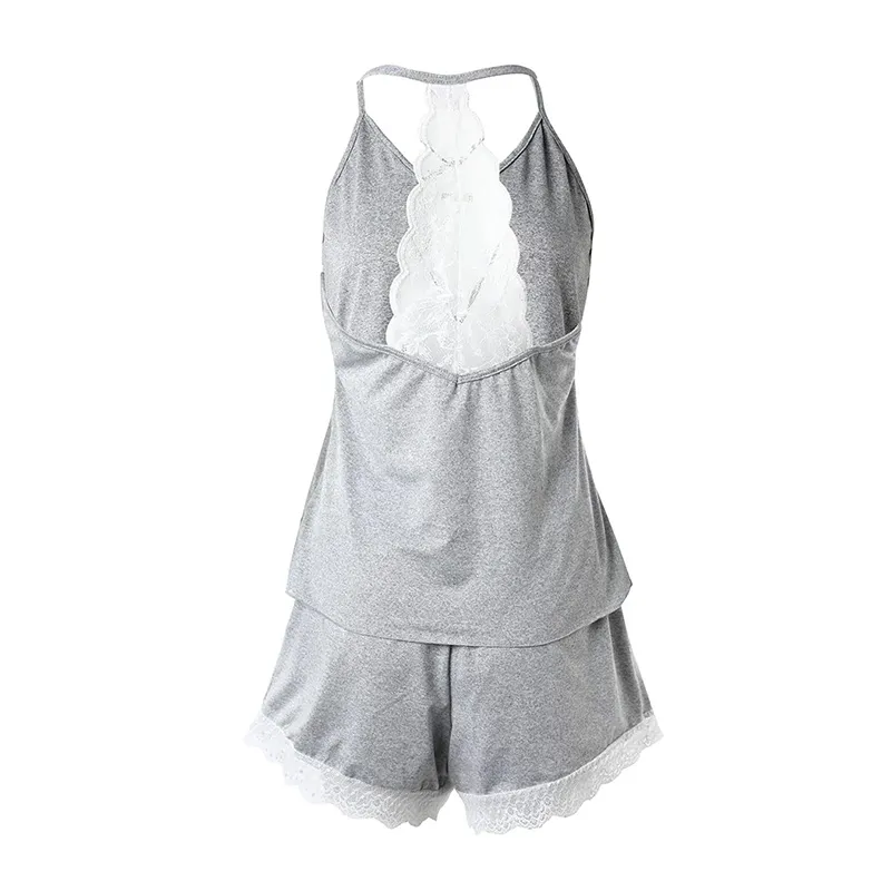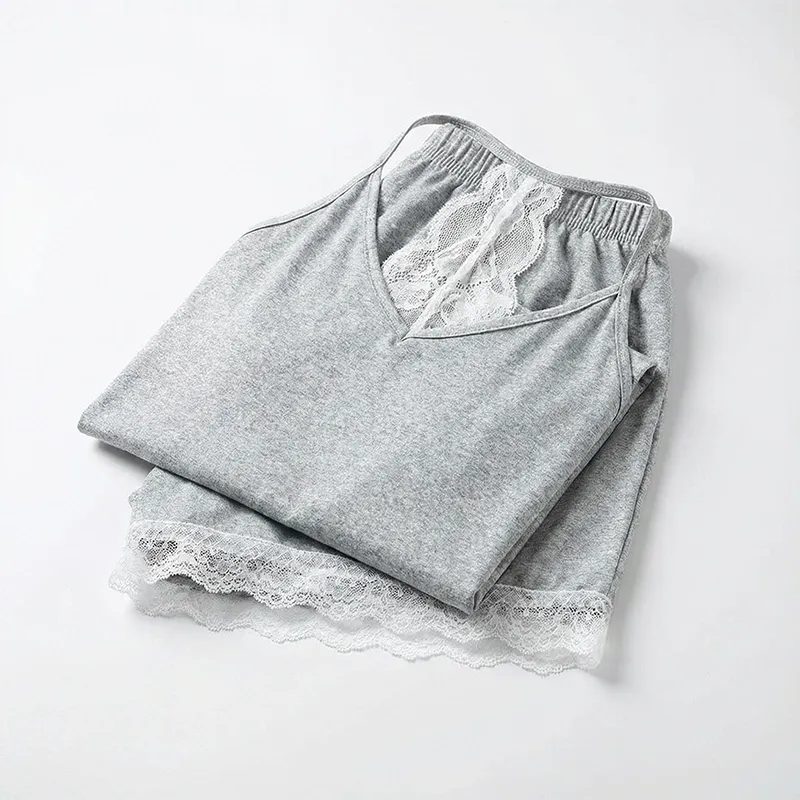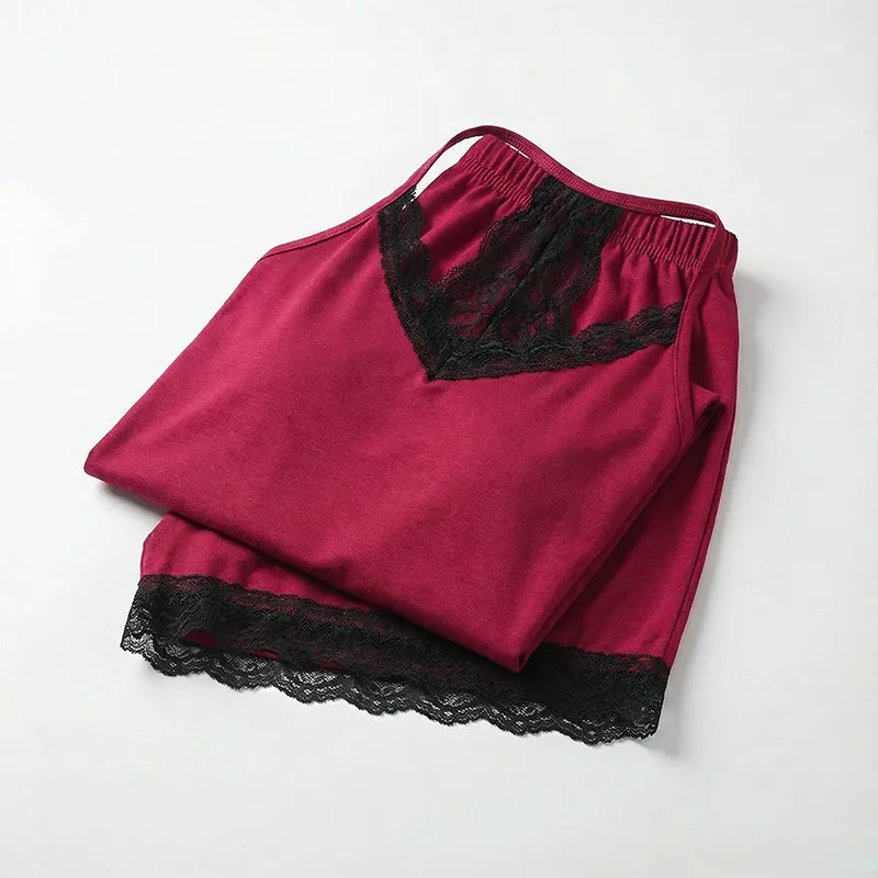 Cet ensemble de pyjama en dentelle ajoute une touche sophistiquée à votre tenue d'intérieur. Le tissu de haute qualité assure un confort optimal, vous permettant de vous détendre et de vous relaxer facilement. Il laisse respirer la peau, vous gardant au frais toute la nuit et favorisant un sommeil réparateur. Conçu avec une coupe flatteuse, il met en valeur votre silhouette naturelle avec élégance. Facile à entretenir, cet ensemble garde sa qualité et sa douceur même après plusieurs lavages.