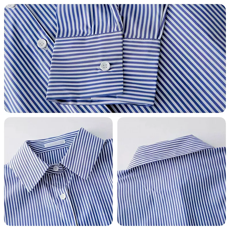 Matière douce et respirante offrant confort, aération et aisance pendant les activités. Les rayures verticales créent un effet amincissant et allongeant, mettant en valeur la silhouette naturelle. La coupe permet un style superposé avec vestes, gilets ou cardigans, pour des looks variés. Les manches longues protègent du froid sans gêner les mouvements. Cette chemise convient aussi bien aux occasions décontractées que professionnelles et deviendra un incontournable de votre garde-robe.