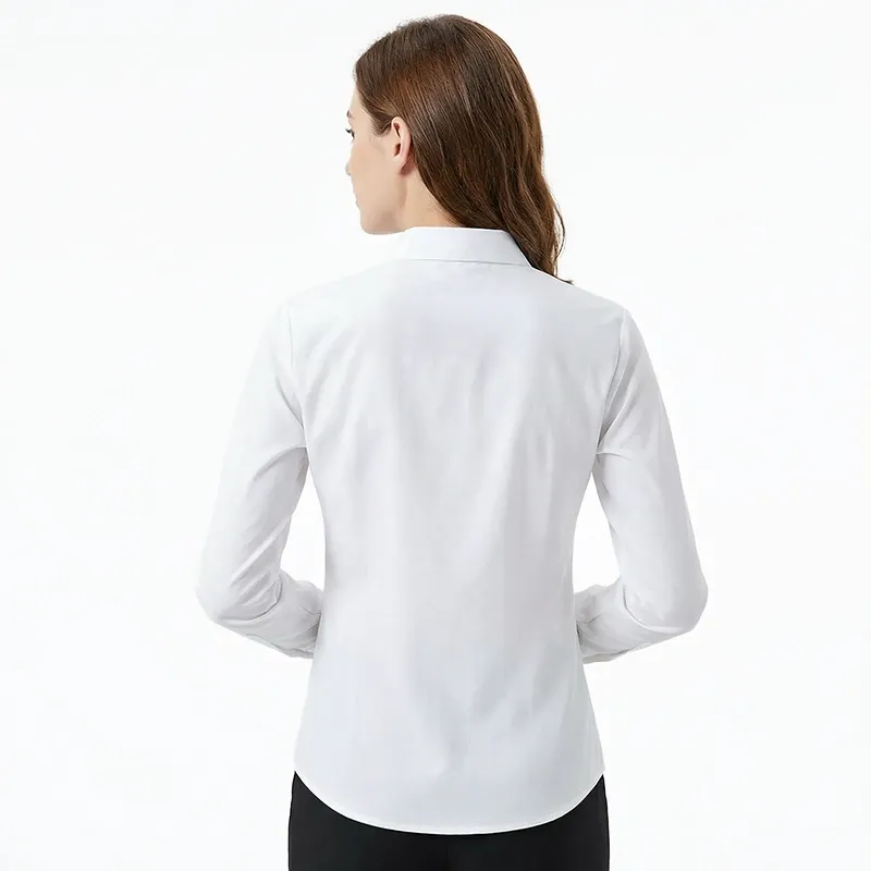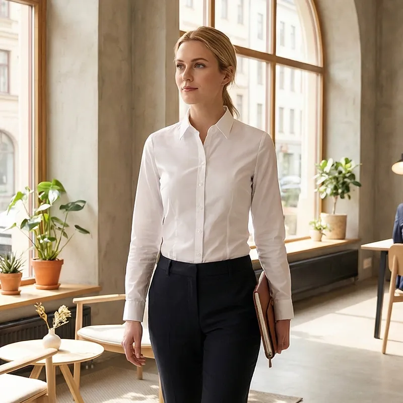 Sublimez votre look avec ce chemisier blanc ajusté, offrant une silhouette élégante. Le tissu doux procure une sensation agréable sur la peau, garantissant un confort lors de longues périodes de port. Son design classique s'accorde facilement avec une jupe, un pantalon ou sous une veste de costume. Les manches longues offrent une couverture appropriée, idéale pour un environnement de bureau formel. Les coutures solides assurent la durabilité, maintenant la forme même avec une utilisation régulière.